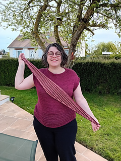 Anacoluthe est un petit foulard en brioche bicolore, tricoté à plat.