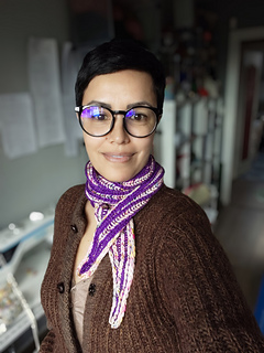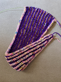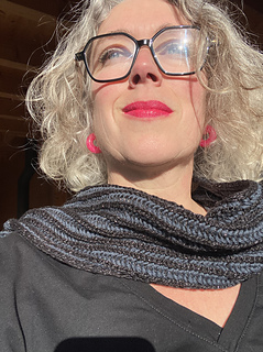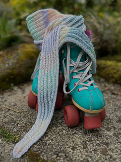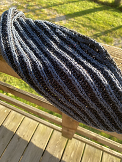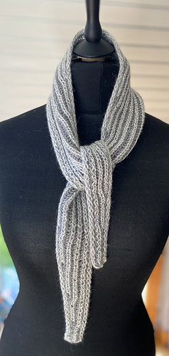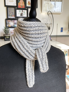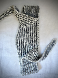 Anacoluthe is a small, flat-knit, two-color brioche scarf.