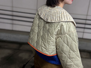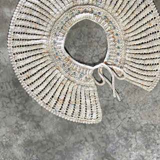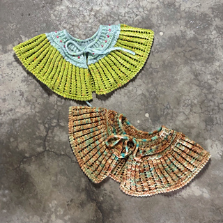 透かし模様で生まれるストライプ柄のフリルとつぶつぶのかわいい刺繍たちが首元を華やかにしてくれるつけ襟です。