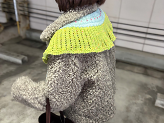 裾から編み始め、I-Cord BOでリボンを付けます。