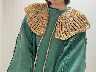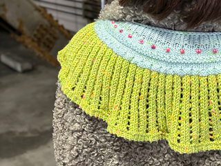 A decorative collar that brightens the neckline with a lace-created striped ruffle and adorable bobble embroidery.