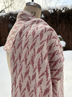 Technically, the shawl is based on mosaic knitting, an ingenious method that allows complex geometric patterns to be created without ever manipulating more than one thread at a time. Every detail has been designed for a high-end finish: the integrated I-cord edges ensure a modern and impeccable fit, while the ribbed sections provide the necessary flexibility for draping. To maximise your comfort, I have optimised the reading of the charts so that they naturally follow the rhythm of your hands, row after row.