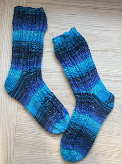 Die Anleitung ist für das Bündchen und das Muster und beginnt wie immer und gewohnt mit Nadel 4. Ferse und Spitze können nach Belieben gestrickt werden.