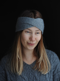 The headband is worked in the round to create a double layer of fabric for extra warmth. After the first section, the fabric is divided into two parts. These two sections are crossed at the center front to form a twist.