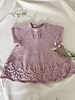 The pattern is for use with light sport or fingering weight yarn and is in three sizes, from birth to 1 year (0 -3, 3 – 6, and 6 – 12 months). Detailed written instructions and optional charts are given, as well as a schematic diagram. All measurements are given in both metric and imperial.