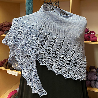 Das Tuch Angorina hat eine Bananenform mit einer auffälligen, ausgeprägten Spitze.
