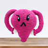 This is an intermediate or advanced beginner pattern. The uterus pictured in the pattern is a pillow that uses plush/bulky yarn, but the uterus could be made using any yarn of your choice and the appropriate corresponding hook. If bulky yarn is used, the body of the uterus is approximately 15” tall and 15” across, with the fallopian tubes adding several more inches on each side.