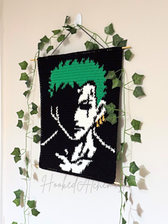 Create a bold, high-contrast anime wall hanging inspired by iconic pirate anime aesthetics. This monochrome tapestry design features dramatic shadows and striking detail, perfect for fans of anime, manga, and geeky home décor. Designed with beginners in mind, this pattern works beautifully as a wall hanging, pillow front, or blanket panel.