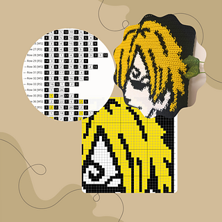 Create a bold, monochrome anime wall hanging with this C2C / graphgan crochet pattern. Perfect for fans of geeky décor and modern crochet projects.