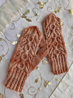 Näissä palmikkolapasissa neulotaan perinteisiä palmikoita, mutta leikitellään eri suunnilla, jolloin ne muodostavat kuvion kämmenen yläpuolelle.