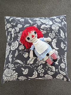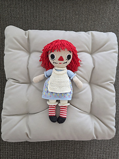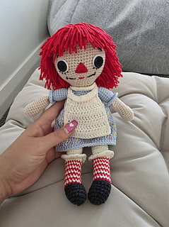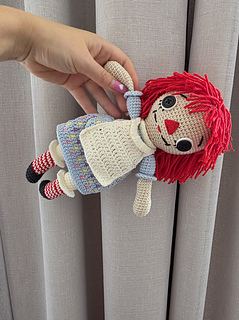 Crochet pattern for Anna Rag Doll or Annabelle. It is super fun. Make a haunted doll yourself as a fun gift or more than that. It has banding legs and arms, so it is flexible in movements. It can perfectly sit by leaning against something. And button eyes add such a charm! The pattern has dozens of pictures.