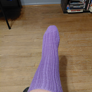 These socks are knit using rib stitch with an unusual count. Knit from the cuff down, with heel flap and gusset construction, the directions are written to work with your desired method for small circumference knitting. Original was knit using Wildfoote yarn from Brown Sheep Company in Little Lilac on US 1.5 / 2.5 mm needles. Available in 8 sizes from, 4.5” / 11 cm to 9.5” / 24 cm finished foot circumference to fit men, women and children. Designed to fit with -1” / -2.5 cm ease.
