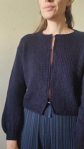 After picking up stitches for the sleeves, german short rows are worked to avoid excess fabric under the armhole. The sleeves are worked in the round until the very end, where decreases create a gentle balloon effect before the cuffs are knitted. The cardigan is finished with twisted rib on the sleeves and body, while an i-cord edging is worked along the front opening and neckline for a clean, polished look.