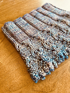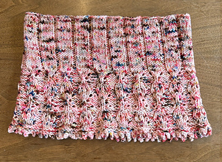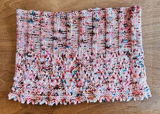 Not only is this the perfect answer to that question you are bound to get while stitching away, you can flip this cowl any which way to wear it. It is fully reversible, you can wear it with the picot edge or ribbing up or down, you can flip it in half with just the ribbing or lacy portion showing, you pick! No matter how you put it on, you will never be wrong!