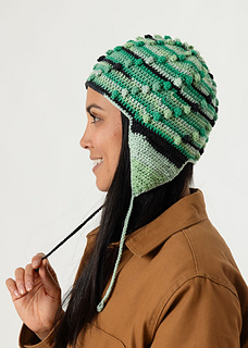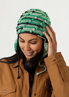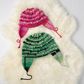 These colorful bobbled hats are crocheted with our self-striping Berroco Sox. Offered in two sizes, these cheerful earflap hats will chase away your winter doldrums. Subscribe to KnitBits for a weekly newsletter with free patterns!