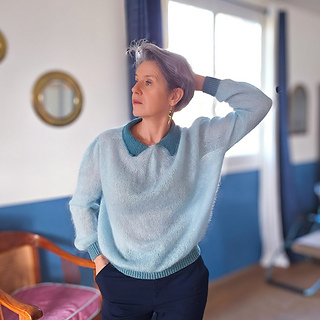 Apolline stands out with its refined details, featuring soft gathers at the neckline and shoulders, while the contrasting collar brings a feminine and elegant touch.
