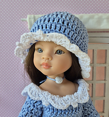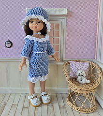You buy a PDF file (6 pages) with dress, hat and bag pattern.