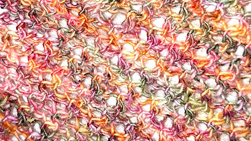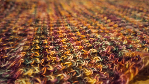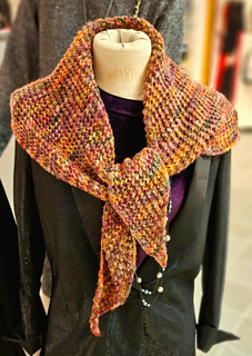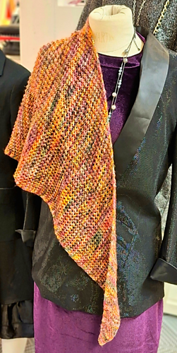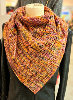 Das Tuch wird von einer Seite zur anderen gestrickt.