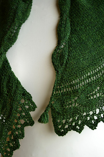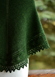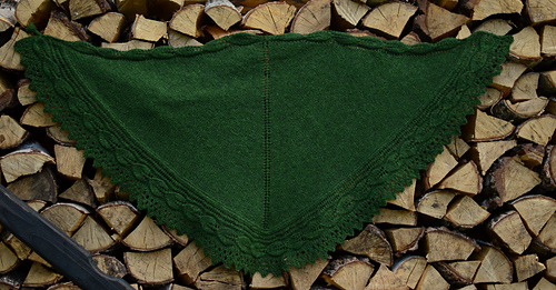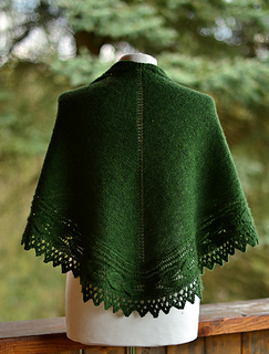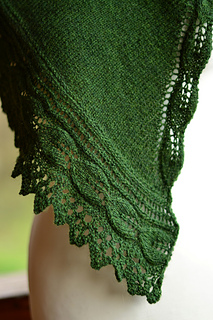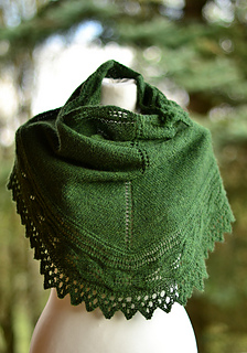 A simple triangular shawl with a perpendicular border and Apple Leaf Lace motif.