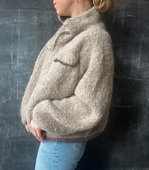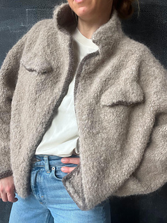 A classic and beautiful jacket worked top-down with saddle shoulders. The jacket features many small, delicate details and is both fun and challenging to knit. It is thick, warm, and has a certain weight to it. The fit is oversized and roomy, making it perfect for layering over a warm sweater on cold days. The pattern includes two optional pocket placements, or the jacket