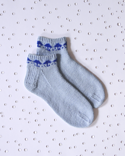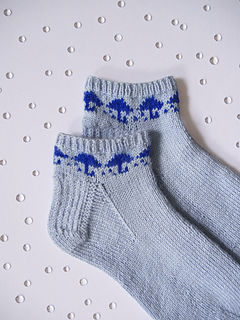 The April Socks are a top down ankle sock with a rainy day umbrella colorwork design on the cuff.