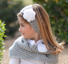 This is a 3 in 1 crochet pattern for an ear warmer, infinity scarf and cowl. The lace roses and edging create a perfectly coordinated, ultra-feminine trio of cool weather accessories. Perfect for mommy & me projects!