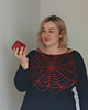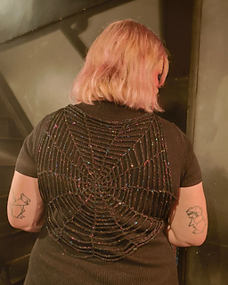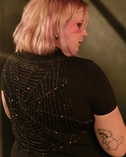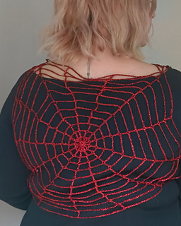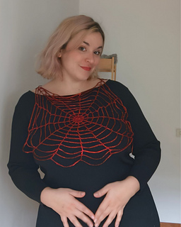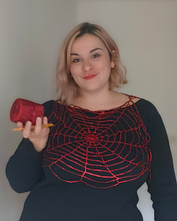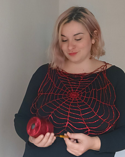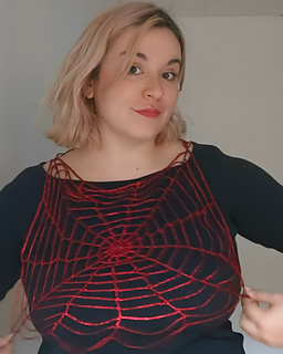 Ce petit top est crocheté en deux parties identiques, en partant du centre et en augmentant de manière régulière afin de créer une toile. Les deux pièces sont rassemblées en créant des chaînette qui passent sous les bras, et une couture aux épaules. Le prototype noir est réalisé en fil double mérinos + paillettes avec des brides, et le prototype rouge est réalisé en lamé avec des doubles brides. La première version est plus souple mais nécessite plus de rangs, la seconde se tient plus et est donc moins fluide.