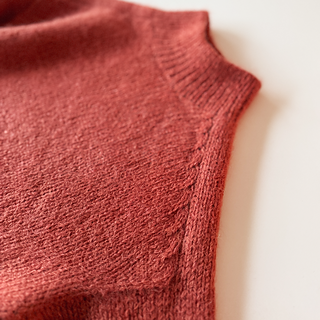 Arches Sweater Junior is an oversize sweater with dropped saddle shoulders, made with highlighted increases. The characteristic increases add an elegant detail to the minimalistic design. Slits are made in the sides and the rib is made longer on the back piece than on the front piece.