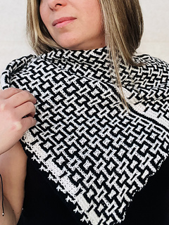 This two-color, asymmetrical triangular shawl features an elegant all-over geometric pattern created through Mosaic Knitting. Worked flat in garter stitch, it uses only one color at a time with increases worked along one edge to shape the shawl. When selecting colors for Mosaic Knitting, it is best to choose high-contrast combinations to make the geometric pattern stand out.