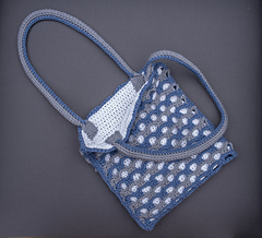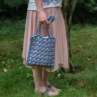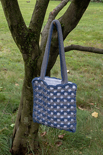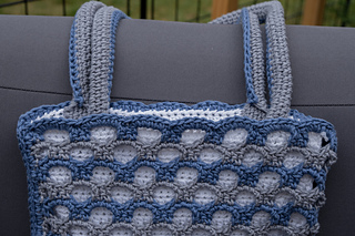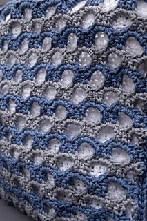 The design uses two contrasting colors for the overlay panel to create the striped archways effect. Using a high contrast color for the lining really shows off the texture of this bag. Half double crochet stitches create a solid lining while the waistcoat stitch works up sturdy handles.