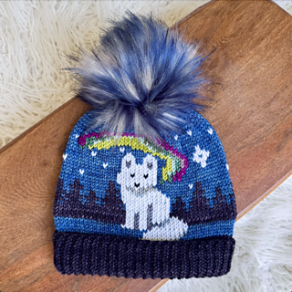 This beanie is part of the Nordic Nights Collection — Inspired by the magic of the north — snow-covered hills, cozy cabins, and long winter nights — this duplicate stitch, worsted weight beanie collection brings a touch of Nordic charm to your needles.