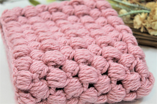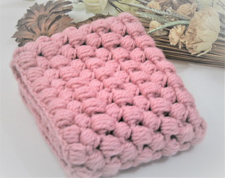The pattern has detail explanations on the puff stitch and offers pictures to help guide you through the puff stitch. The finished measurement after it is sewn together is 8 inches in height and 31 inches in length but can be customized to any size.