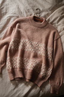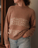 The Arden Pullover is a relaxed drop shoulder style sweater with colorwork floral stripes on the body. Knitted in drapey alpaca yarn that provides excellent stitch definition, this sweater is soft and cozy for cold days.