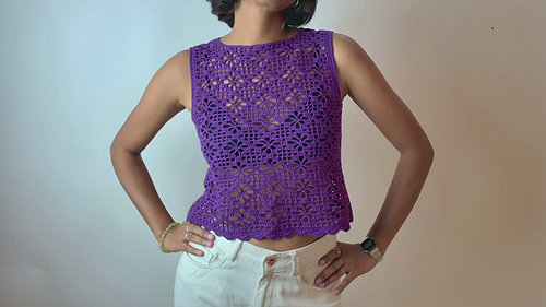 This pattern provides instructions for creating the bloom top in one size, with tips on how to customize it to your unique measurements. Since every body shape is unique, I believe it’s important to customize the fit based on your specific measurements rather than relying on a generic size chart. Instead of giving you predetermined numbers, I’ll walk you through how to create a gauge swatch and calculate the foundation chain that matches your measurements.