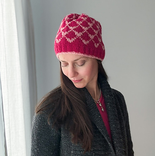 Argyle Love is a fun and quirky (yet modern) hat designed for Valentine’s Day - heart motifs are sort of hidden in the traditional argyle pattern. Knit it in pinks for the season or in neutrals for all winter wear!