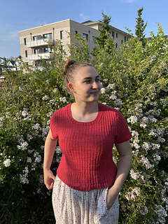 SIZE GUIDE:The Ariatee should be knitted with a positive ease of 3-6 cm relative to your bust measurement. Choose your size according to the following bust measurements: 80-85 | 85-90 | 90-95 | 95-100 | 100-110 | 110-120 | 120-130 | 130-140 | 140-150 cm. If your bust measurement is 109 cm, you should choose size XL.
