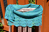 A crescent-shaped shawl with a wide lace border and wide ends.