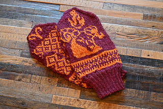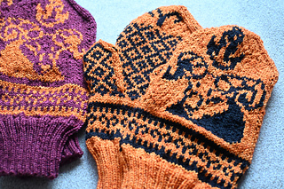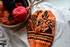 Recommended for intermediate knitters familiar with reading charts and stranded colorwork. You can knit these mittens in any two contrasting colors in the yarn of your choice. I have chosen red and orange for one pair and orange and black for the second pair as the colors remind me of flame, but hey, don’t let my imagination hold you back.