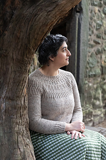 Ariundle is a top-down, circular yoke sweater with an intricate textured yoke made up of knits, purls and crossed stitches.