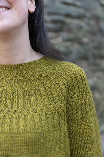 There are short rows worked into the ribbing at the neckline and the yoke is finished with raglan shaping to give the perfect fit.
