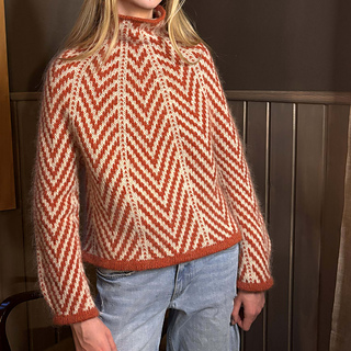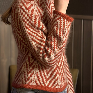 Genser med pileformet stripemønster over det hele, derav navnet Arrow Sweater. Modellen er strikka ovenfra, har rundøkning i mønsteret og så et stykke raglanøkning før man deler mellom ermer og bole. Ermene er rette og fellingen er innbakt i mønsteret på utsiden av ermet. Oppskrifta har flere alternativ for hals og avslutning på erme og bole, og kan med andre ord tilpasses ulike ønsker.