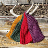 Gold version is aran weight, Red version is two strands of sport alpaca held together, and the pink and green are DK weight yarns held double with mohair. All samples, despite slight size differences, fit my 22.5” head just fine.
