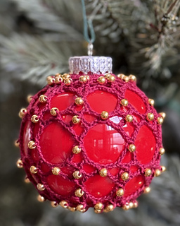 A beautiful ornament cover featuring geometric designs of circles and diamonds. I have included separate patterns with photos for both the plain and beaded versions.