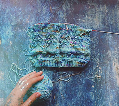 Fingering weight yarn (sample knitted with Hedgehog Fibres Sock in Monet colorway)