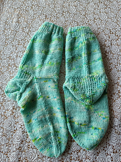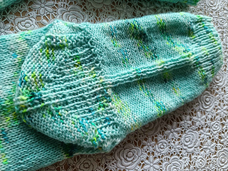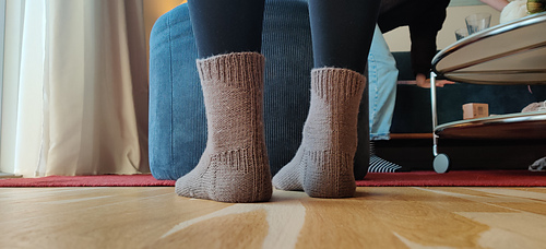 Asgerd socks are traditional knitted socks with a heel flap and gusset.