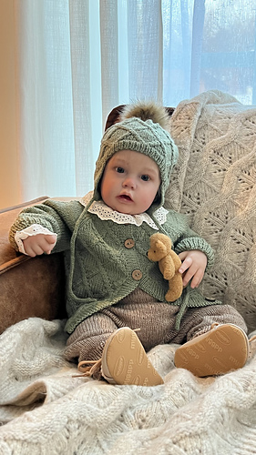 Asmund hentesett er oppkalt etter min morfar, jakken har en enkel flette teknikk og med raglan fellinger.
