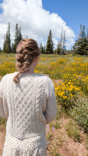 The Aspyn Sweater is a DK weight sweater, featuring 2x1 rib, cables and moss stitch. It features a drop shoulder and an oversized fit. It is worked bottom up, then split for sleeves, and the back and front are knit flat. The shoulders are attached with a 3 needle bind off. Stitches are picked up for the collar and armholes for each sleeve or ribbing to make a slipover.