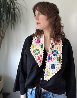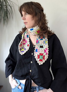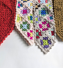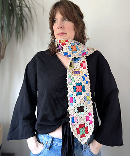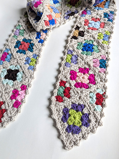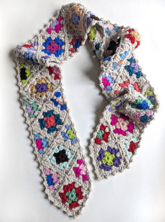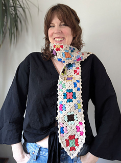 This is the Aster Granny Square Scarf. It is an easy crochet scarf which is perfect for stash busting your yarn leftovers.