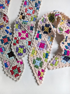 I use DK yarn, but you can use any yarn that takes your fancy. You can also make this scarf in any length you like. I have made granny square neckties, a longer, cosy scarf, and a cute headscarf, all following the same crochet idea for a quick-fix project.