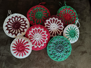Yarn needed: if you are using yarn similar to Twister from Hobbii, you will need 1000 meters for the background and about 900 meters for the pattern and 2.5 mm hook. The size of my sample is 36” fixed on the hoop, the size of your mandala will depend on your yarn, hook and tension. I recommend having the mandala finished before ordering the hoop. I bought my hoop at eFavormart.com